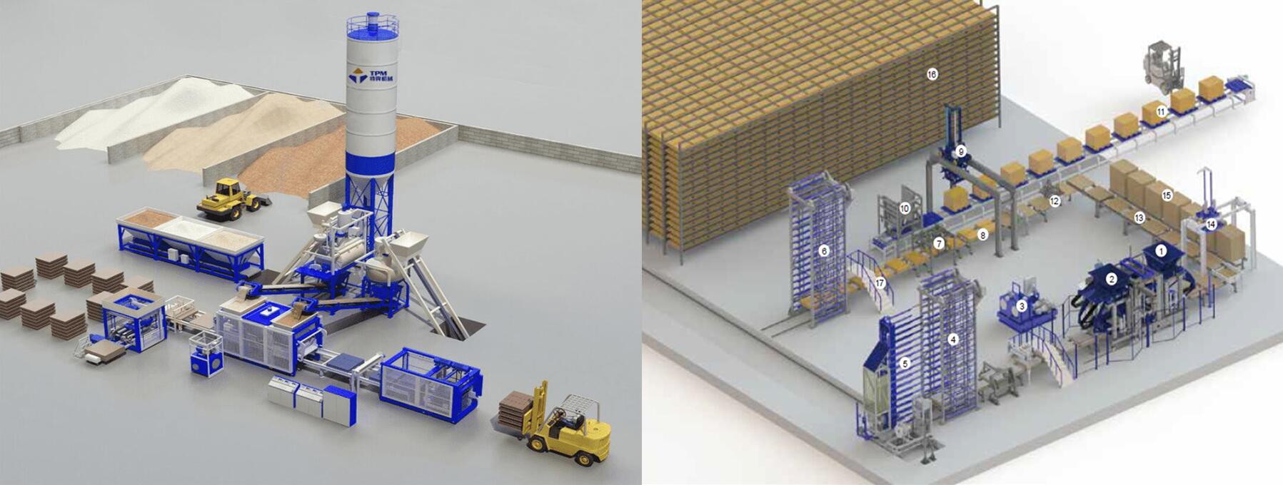 (3D line photos for Semi-automatic & fully automatic concrete brick production line)